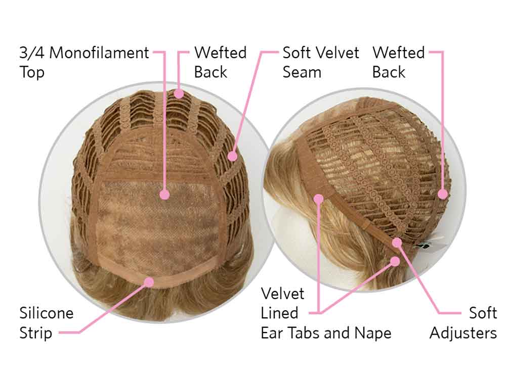 Features include a monofilament top, a soft lace front for an almost undetectable hairline, velvet-lined ear tabs, ultra-thin adjusters at the nape to ensure a secure fit and resilient stretch material throughout the cap base for a custom-like fit.