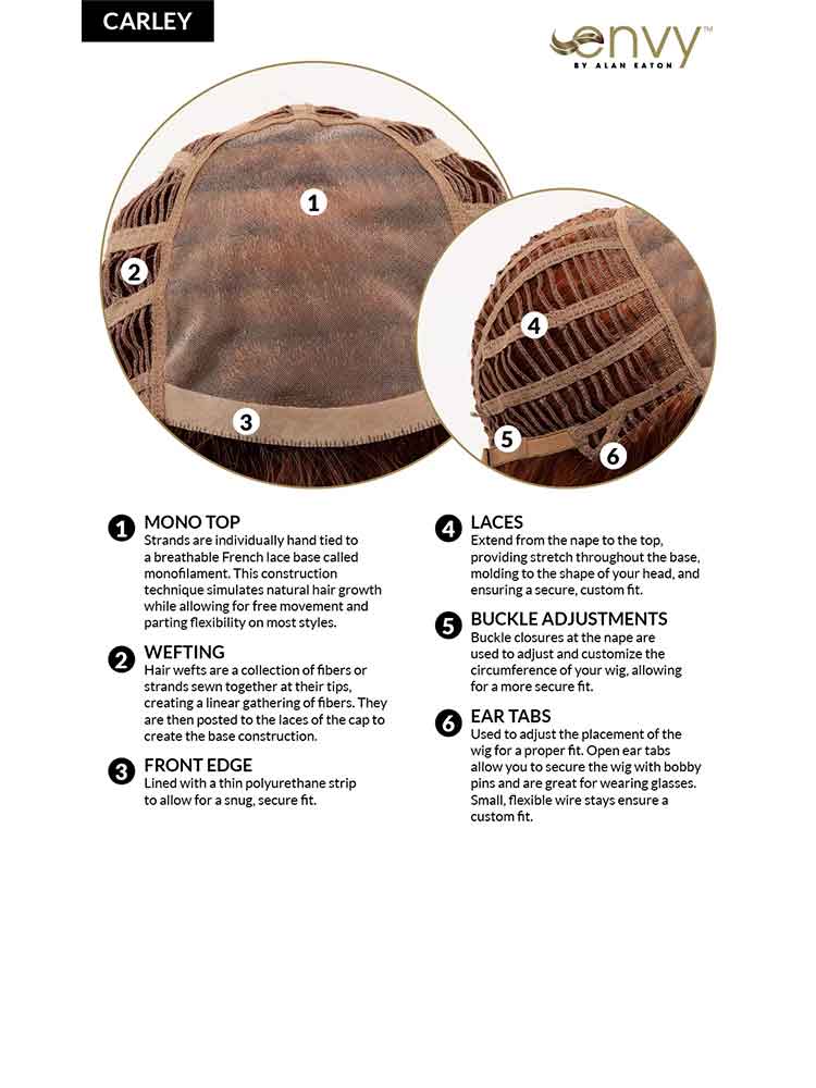 Features include a monofilament top for a natural scalp ans allows the parting to moved, velvet-lined ear tabs, ultra-thin adjusters at the nape and resilient stretch material throughout the cap base for a custom-like fit.