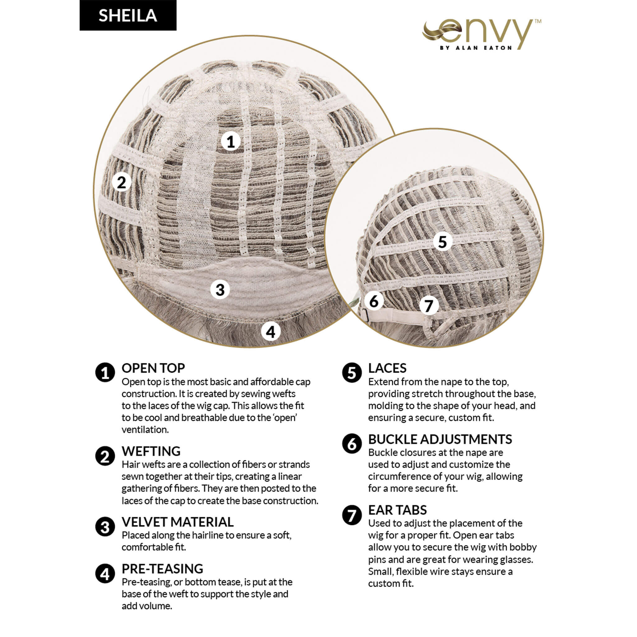 The Sheila wig by Envy (formally Coco by Natural Collection) has hair sewn by machine on to wefts, which are in turn attached to fine cotton tapes.