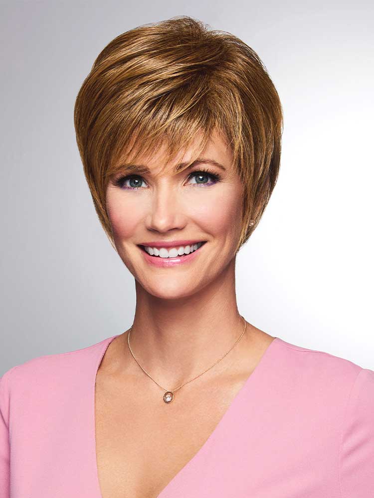 The Elation wig by Gabor is a sophisticated, tailored cropped bob has beautiful, natural movement and requires minimal styling. A firm shake right out of the box and a bit of finger styling is all that’s needed.