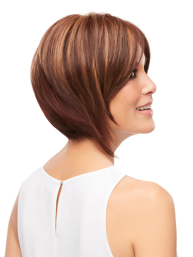 The Eve wig by HD Collection Jon Renau is an asymmetrical ladies style, which can be straighten for an edgy look or gracefully curled for a playful do. This stacked bob has it all heat resistant fibre that can be styled with heated products, a seamless lace front and a comfortable single monofilament top.