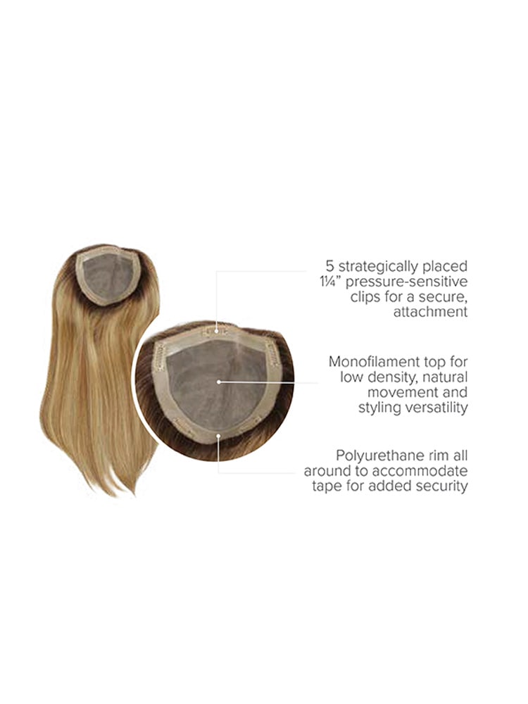 The Gilded 18" Enhancer by Raquel Welch is perfect for those experiencing fine or thinning hair. This human hair top piece is the perfect answer for women with longer length hair. An ample base conceals fine or thinning hair at the crown with extra volume and coverage to give you the long, full hair you've always wanted.