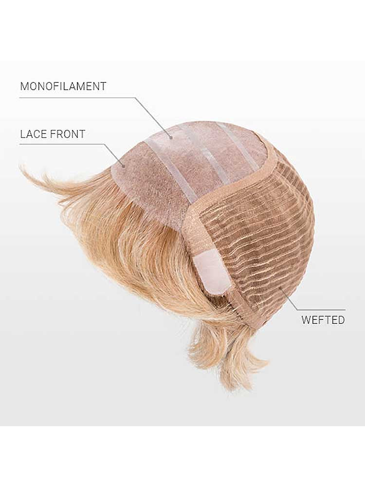 Features include a monofilament top creating the illusion of natural hair growth at the crown and parting area, a soft lace front for an almost undetectable hairline, velvet-lined ear tabs, ultra-thin adjusters at the nape and resilient stretch material throughout the cap base for a custom-like fit.