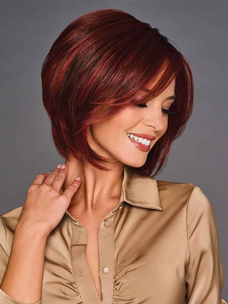 The Glamorize Always wig by Gabor is a softly structured, sophisticated bob with volume in the crown and longer face-framing layers that can be tucked behind ears or worn on onto the face.