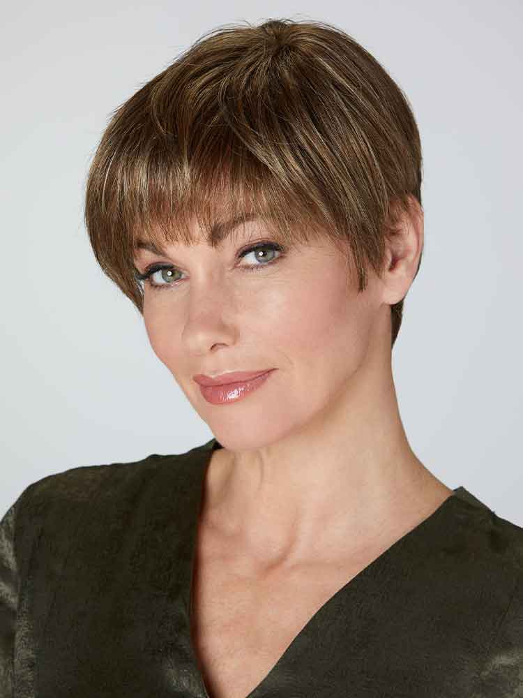 The Harwood Mini Petite wig from Natural Image is close-to-the-head, cropped style which takes inspiration from the timeless pixie haircut.