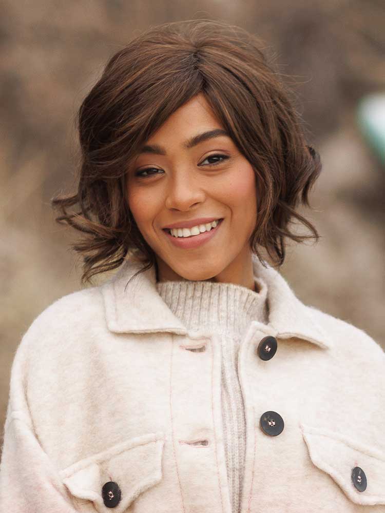 The Iris wig by Sentoo Lotus Collection is a contemporary, tousled bob for every day wear. For an invisible hairline finish this style features a lace front and a monofilament top which gives the illusion of natural hair growth from the crown and parting area.