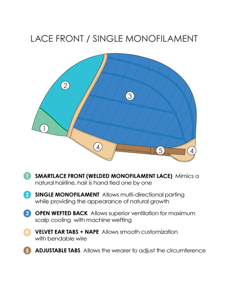 • Cap Construction: Wefts - Monofilament Top - Lace Front