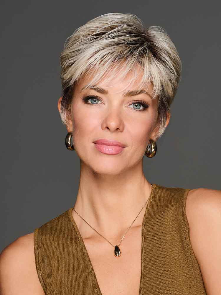 The Jaw Dropper wig by Gabor Created is for the woman who wants a low-volume pixie. Wear smooth and flat against the head or with airy volume.