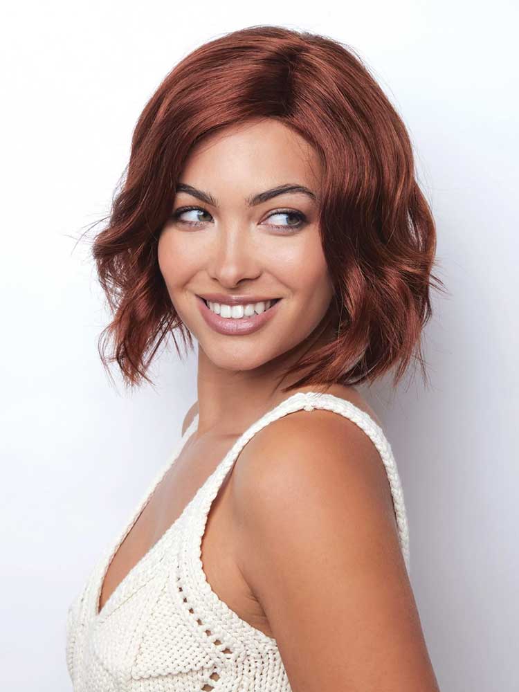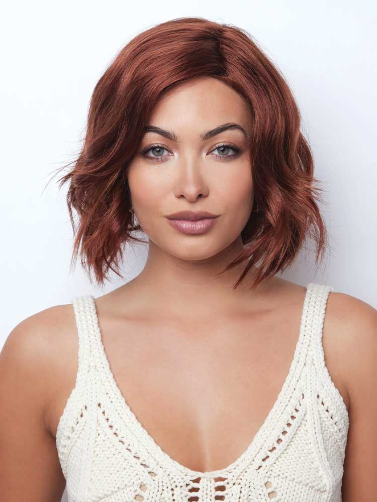 The Liana wig by The Orchid Collection is a mid-length synthetic wig. This wavy ready-to-wear wig is a stunning bob with a fringe and soft, shattered waves.