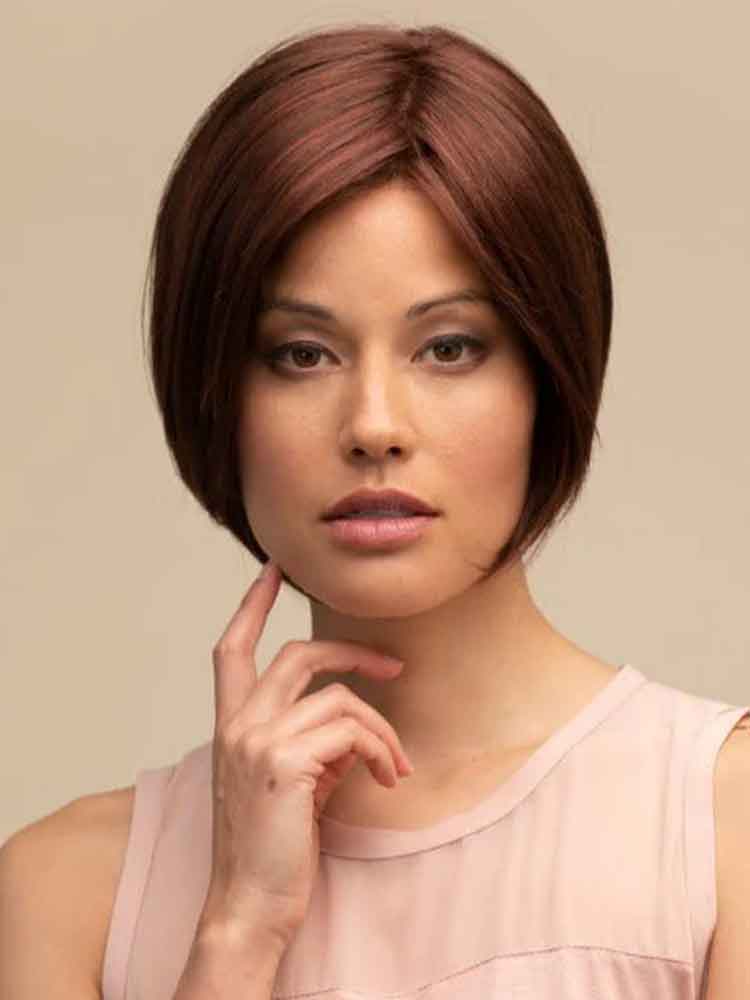 The Mia wig by Dimples is a sophisticated, stylish graduated bob. With face framing layers and side sweeping fringe. The monofilament top for comfort and natural appearance along with the lace front give the effect of a realistic hairline.
