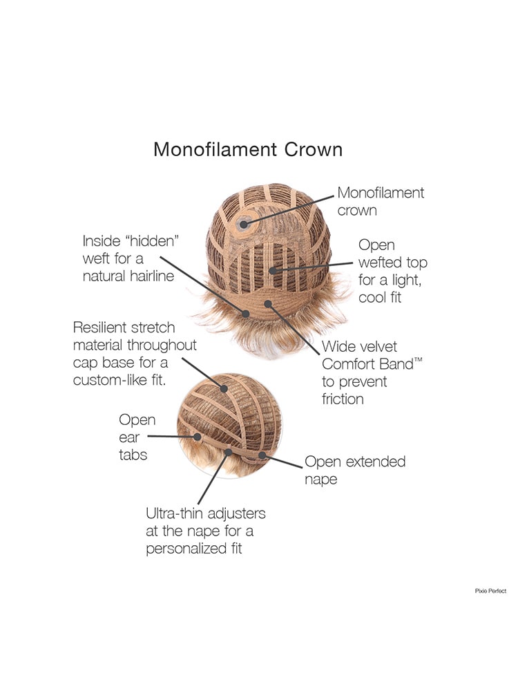 Caps with wefts are easy to style and allow air to circulate around the scalp. It is fully adjustable and features a monofilament crown construction which creates the illusion of natural hair growth from the crown and parting area.