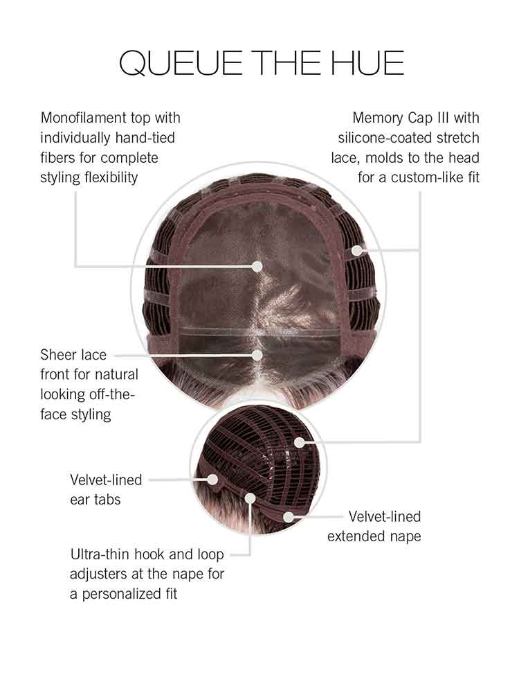 Features include a monofilament top creating the illusion of natural hair growth at the crown and parting area, a soft lace front for an almost undetectable hairline, velvet-lined ear tabs, ultra-thin adjusters at the nape and resilient stretch material throughout the cap base for a custom-like fit.