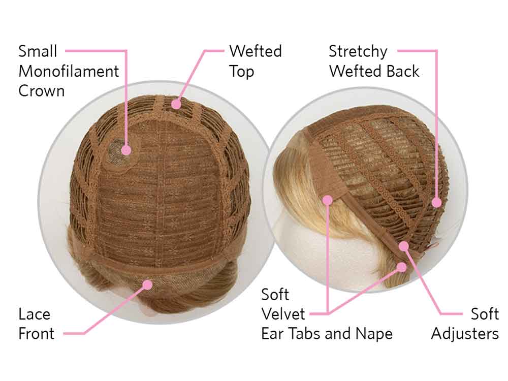 Features include a monofilament crown, a lace front, velvet-lined ear tabs, ultra-thin adjusters at the nape and resilient stretch material throughout the cap base for a custom-like fit.