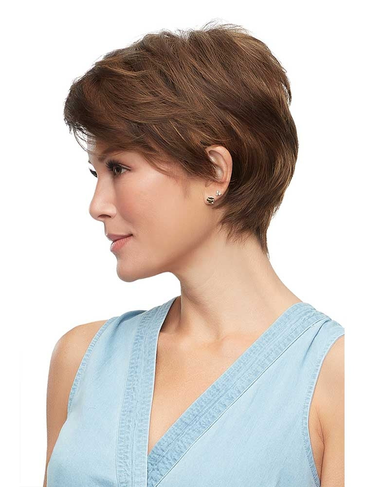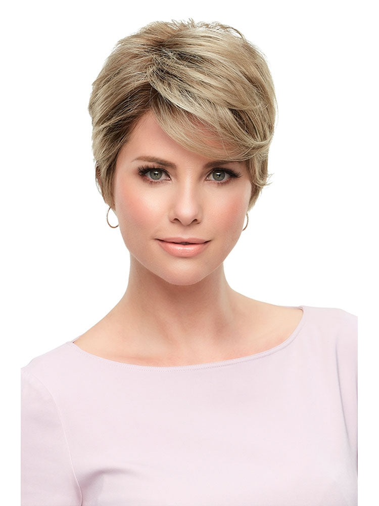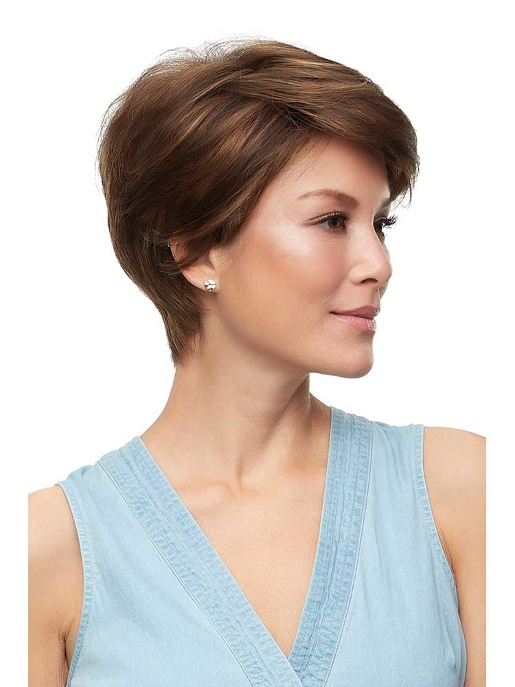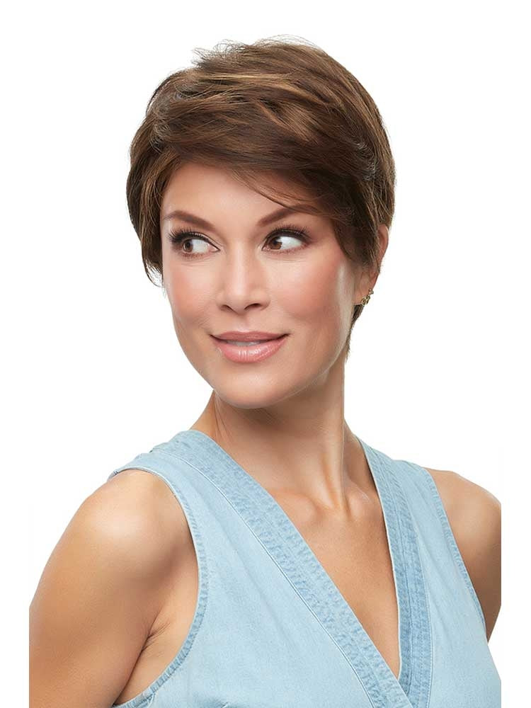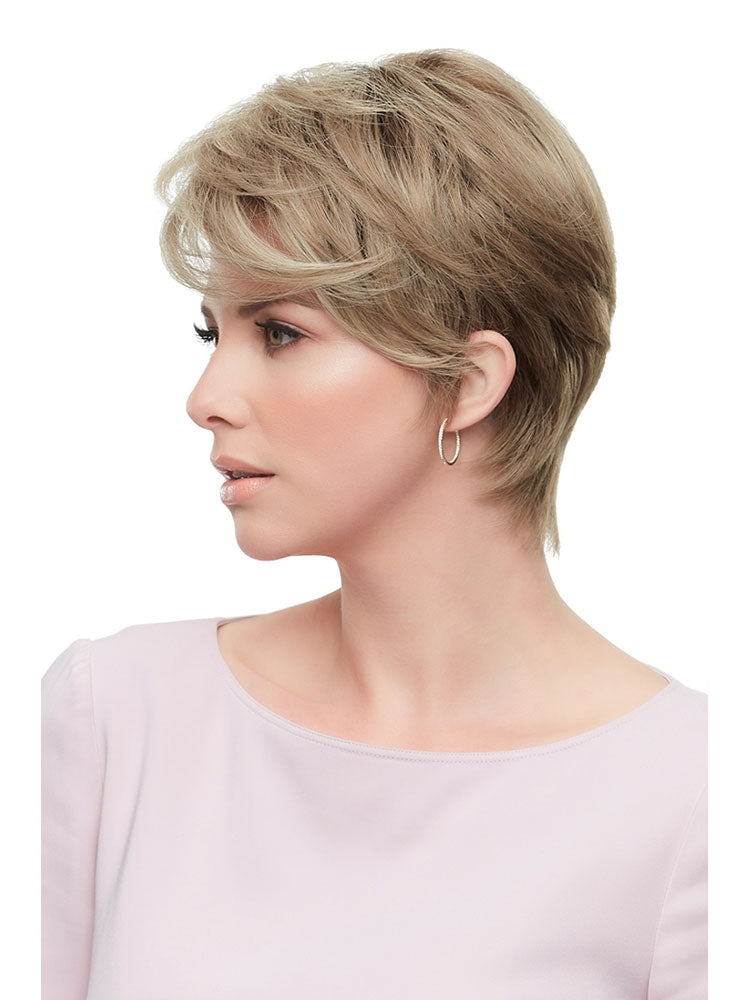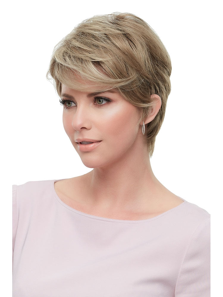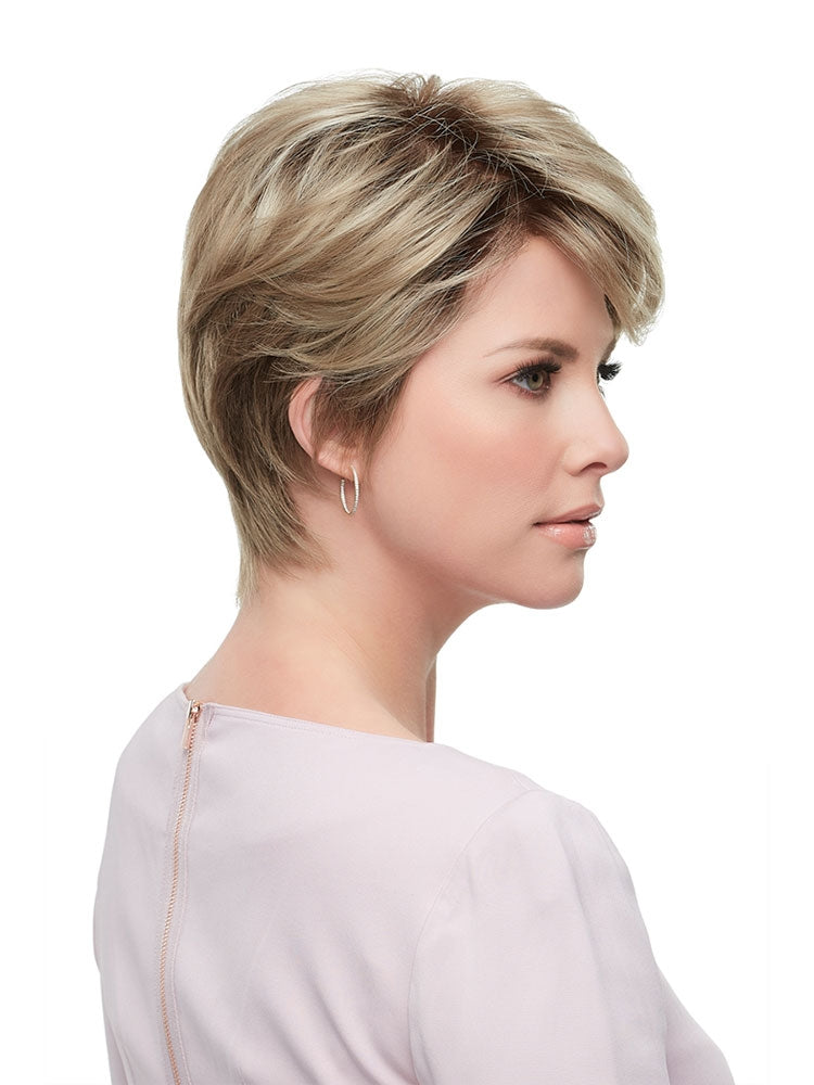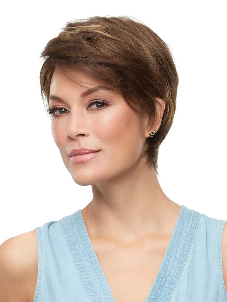 The Rose wig by Jon Renau has a long fringe on this short-layered crop to create a remarkable variety of sophisticated looks. The SmartLace hairline and monofilament top provide a supremely natural appearance and feel.