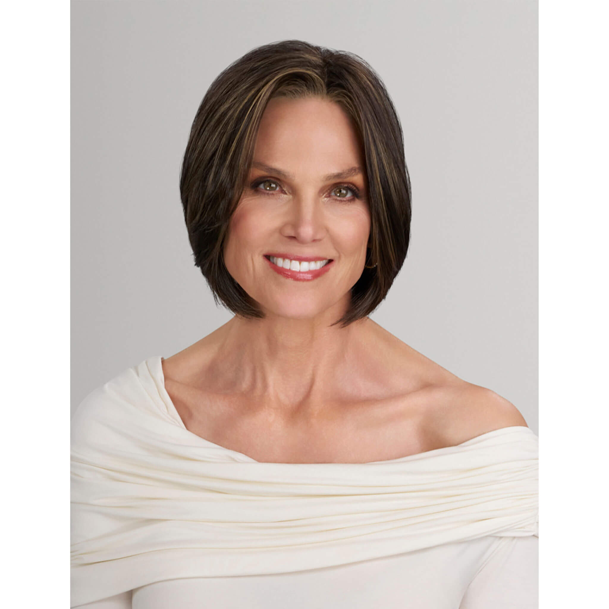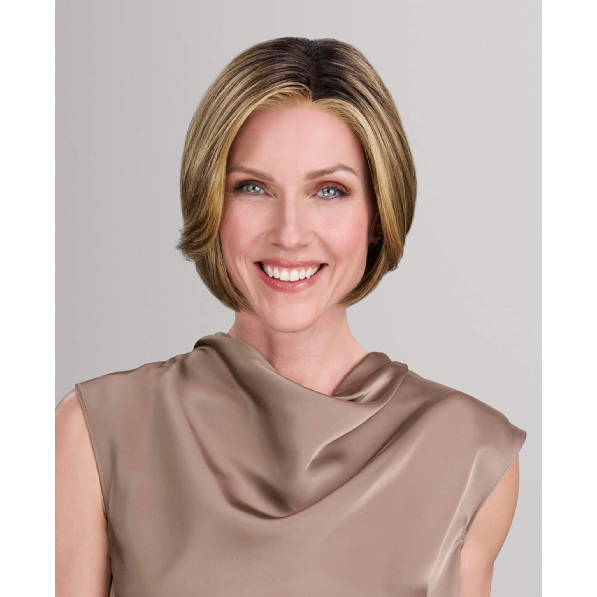 The stacked layers in the back add shape and movement and the angled cut gives it a modern, bold look. The monofilament top lets you change your part naturally, and the wefted back keeps the wig comfortable and secure. Shelby is a fresh, updated take on a classic bob.