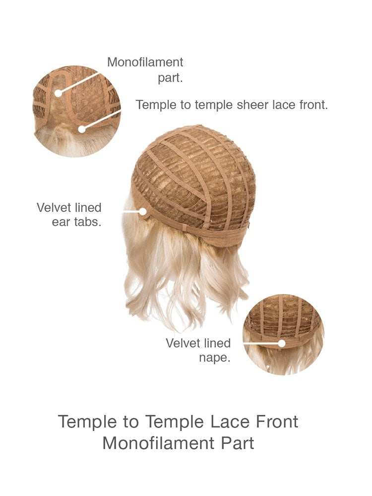 Caps with wefts are easy to style and allow air to circulate around the scalp. It is fully adjustable and features a temple-to-temple lace front for off-the-face styling and monofilament part construction which creates the illusion of natural hair growth from the crown and parting area.