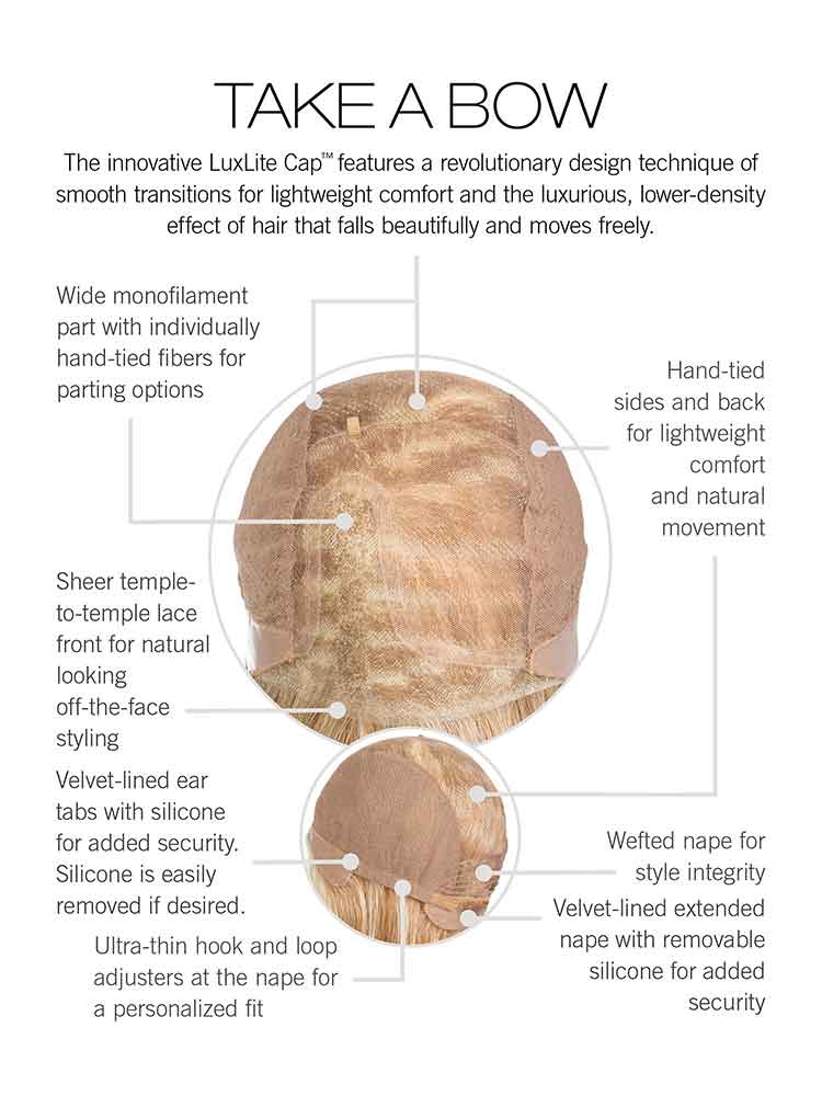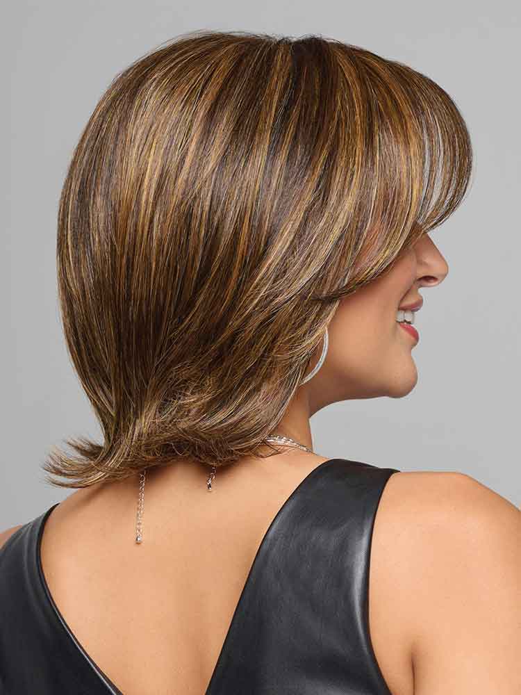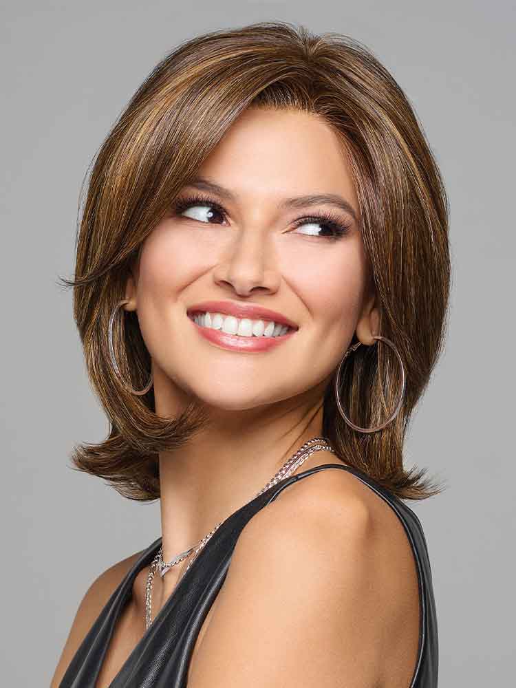 Take A Bow wig by Raquel Welch is light density with soft layers and styling flexibility lets you amp it up or wear smooth and even tuck behind the ears.