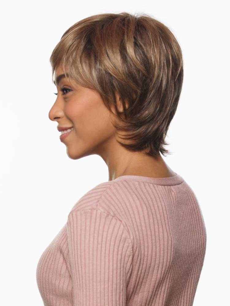 The Tulip wig by Sentoo Lotus Collection is a choppy short style with a longer back. Features a lace front and a monofilament top which gives the illusion of natural hair growth from the crown and parting area.