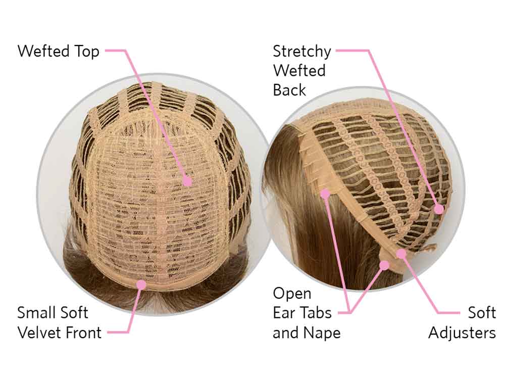 Caps with wefts are easy to style and allow air to circulate around the scalp. It's natural looking and perfect for those with sensitive scalps, those undergoing chemotherapy or those with alopecia.