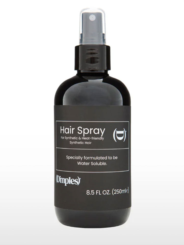 This Dimples Hairspray for synthetic hair has been specially formulated for your hairpiece to give it the desired shine and hold without stiffness. Easy brush- out water soluble formaulations.
