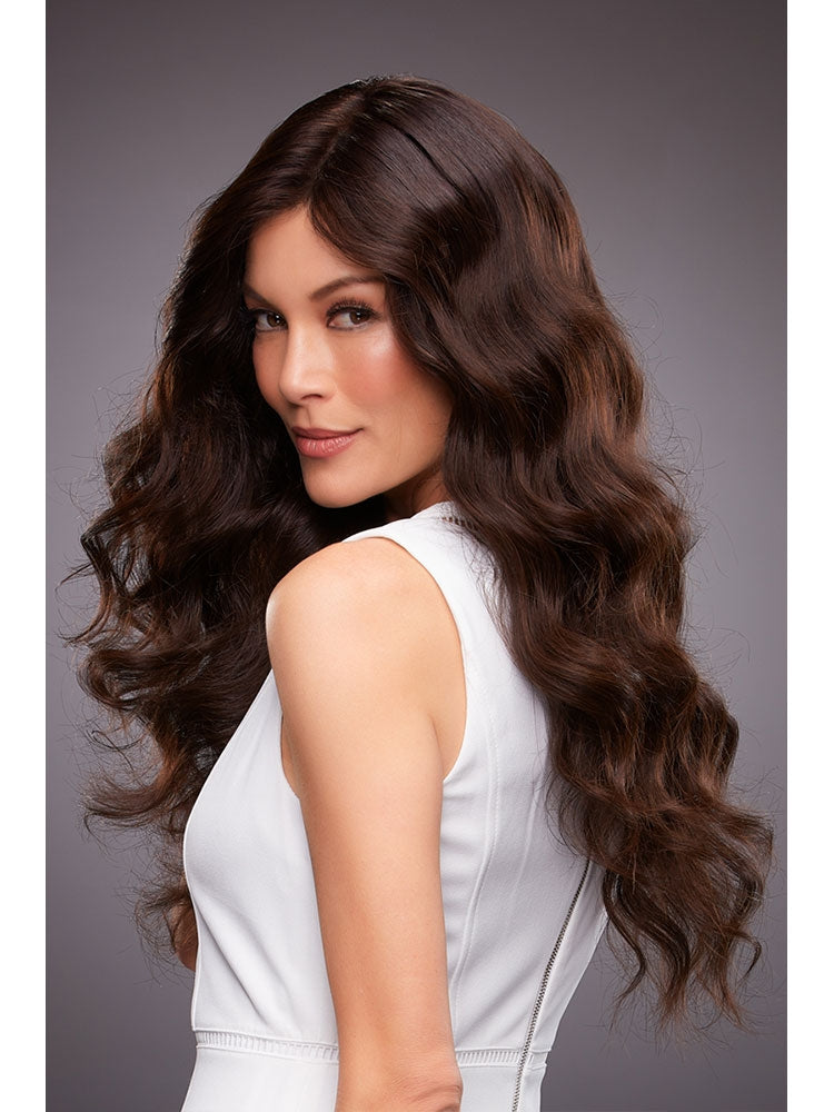 Made with the finest Remy human hair and extra long layers plunging nearly to the waist, Kim features a stretchy hand tied cap and an undetectable lace front.