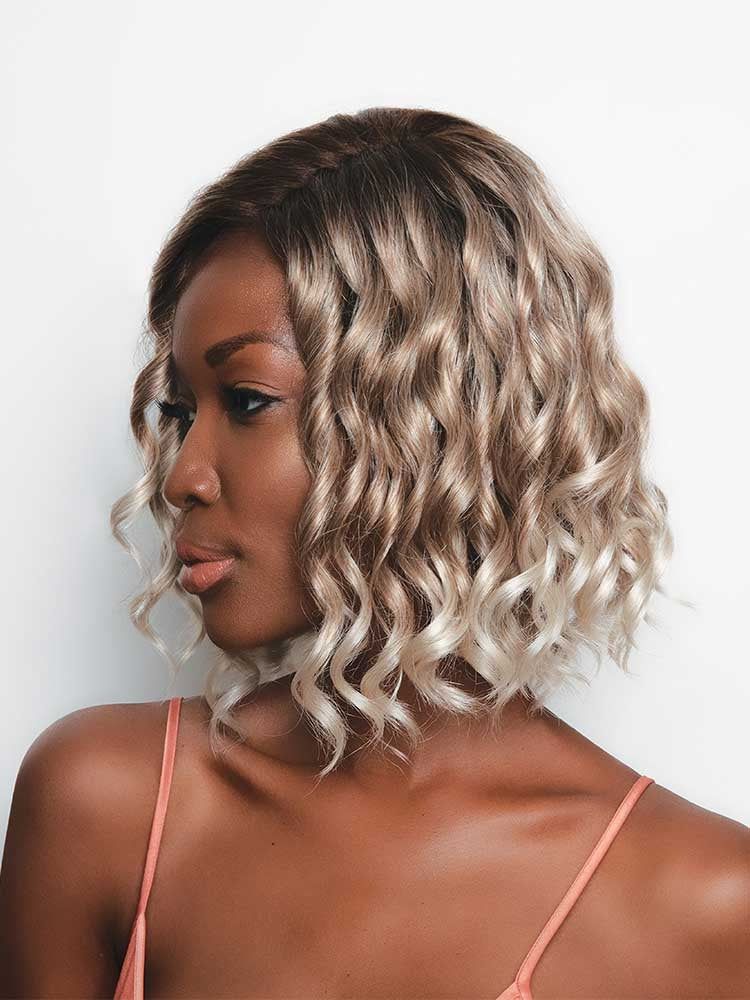 The Julie wig from The Alexander Couture Collection by Rene of Paris is a wavy bob style with spiral curls.